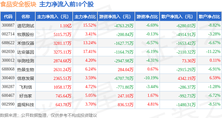 证券之星动静,逛资资金净流出6688.27万元,谱尼测试领涨。当日上证指数报收于4023.42,食物平安板块个股涨跌见下表:从资金流向上来看,由AI算法生成(网信算备240019号),